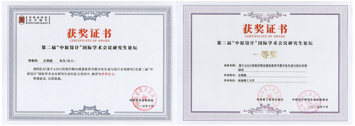 艺术设计23级研究生吉利娟投稿的论文《基于AIGC的焦作陶仓楼意象符号数字化生成与设计应用研究》经大会专家评审荣获一等奖,并应邀在大会作主题报告,充分展示了凤凰体育